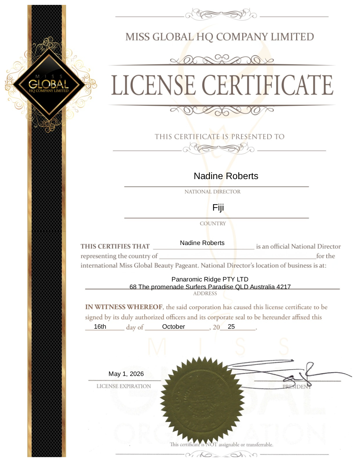 Founded in 2011 by Van M. Pham, the Miss Global Organization, LLC stands as a platform that celebrates beauty with purpose and diversity with pride. After marking a remarkable 10-year journey, Miss Global entered an exciting new phase through a partnership with Pui Piyaporn Sankosik, Chairwoman of TPN Global Co., Ltd. — who now leads as the President of Miss Global.